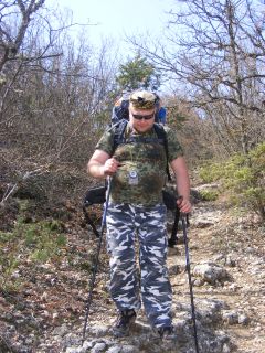 Вернулись назад, нашли правильную дорогу. Мы ее не теряли, мы ее, на момент ухода в сторону, даже не искали. Андрюшечкин, повесив компас на шею и положив его на то что ниже груди, со словами:"Я по Крыму без компаса не хожу", потихоньку спускается по нужной тропе.
