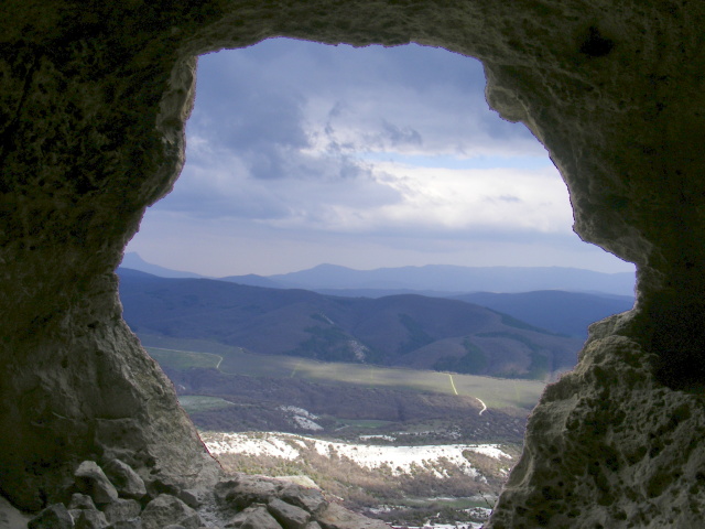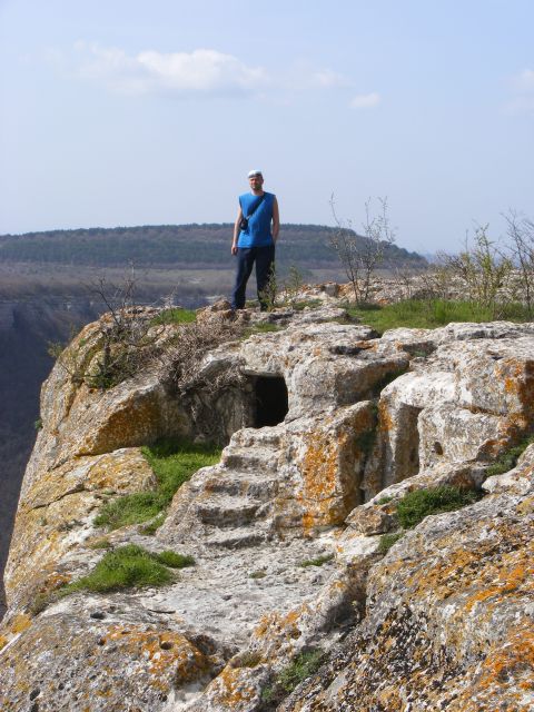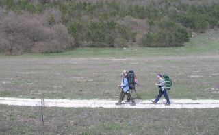 Где-то там за из спиной (в смысле впереди, это ребята фоткаются на фоне Крыма) Мангуп-кале. История Мангупа достаточно интересна, но ее лучше читать на тематических страницах, а не пересказанное и перевранное мною.