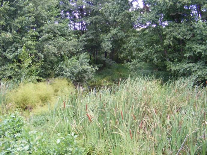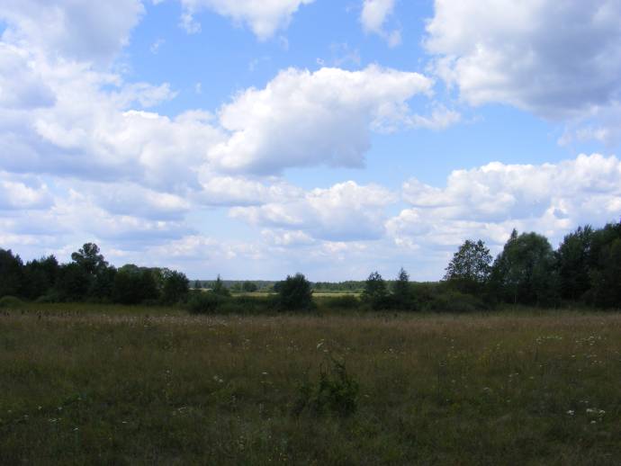 А впереди по карте Колесники и Сидоры. В Сидорах нам делать нечего. а Колесники по пути. Хотя вот сейчас смотрю на генштабовскую карту и думаю, что можно было и чрез Сидоры пойти. Но мы пошли чрез скошенное поле, вдоль оврага. Этот овраг очень четко виден на гуглемапе.Поле длиной километра 3 с половиной. уже подходя к краю поля Люда остановилась и сказала: "Славик! Сфотографируй меня на фоне этого поля.» — и добавила — "Огромное поле, огромное поле, одно на двоих.»