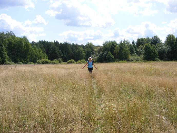 Идти по этому лугу можно только так. Расставив руки, чтоб верхушка травы щекотала ладони. Голову поднять вверх и глубокий вдох/выдох.
