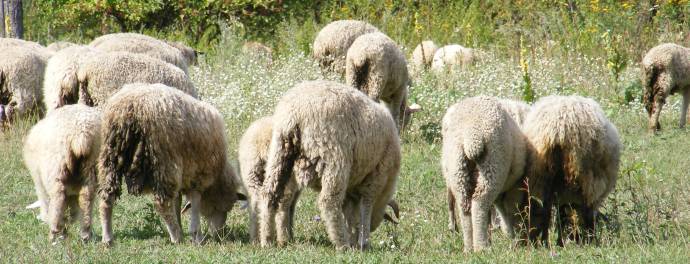 Думаете все закончилось гусями? Не-а. отара овец. Эти звери нам только свои зады показали. Люда пыталась их потрогать, но они мирно от нее отошли.