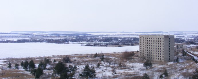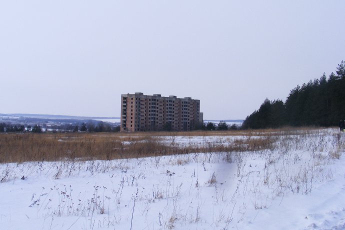 По полям, по лугам ноги идут в сторону города атомщиков. Города? Ну… так он известен. Кто, когда его так назвал — не знаю Но история говорит, что в некие времена было принято решение о строительстве Харьковской Атомной. А может врут. Но тем не менее. Посреди поля — многоэтажка. Вру. Две!