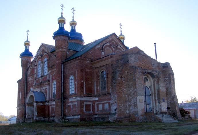 Как ни странно, но почему-то очень мало известно об этом храме. Нашел у Филарета про Борщевую, вернее про храм (Тихоновская, год постройки — 1868, постройка каменная, строился, внимание, прихожанами, архитектор — Ф.И. Данилов.) Там того села чуть-чуть, нет, наверное, ни одного каменного дома на то время, но такой храм соорудили. Теперь это Свято-Тихоновский храм УПЦ. Хотел зайти во внутрь, но к сожалению батюшки не было. Плодовитый архитектор оказался, на его счету более 70 храмов в Харьковской губернии. Вот тут нашел про него