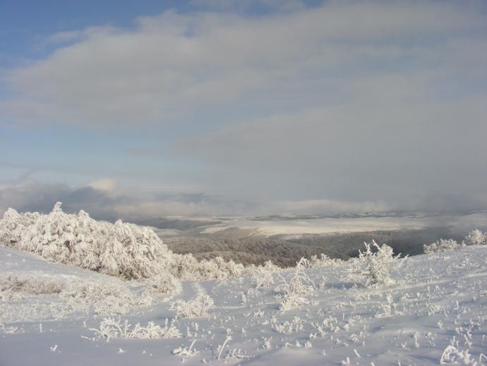 Пока, с утра, погода радует. Легкий морозец. Немного снега. Ну что? Пойдем к поляне Ман. Но не дойдем. Мы от нее отойдем.