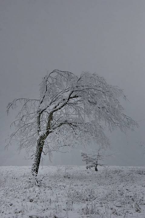 дерево с деревЁнком гуляют холодным зимним вечером.
