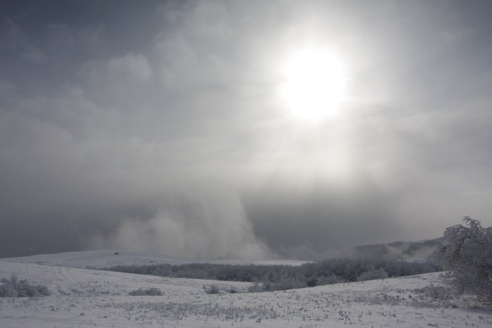 Вот такая погода нас преследовала. Светофильтр убирает снежную слепоту.