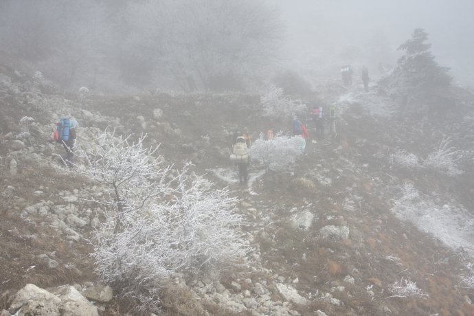 А рюкзаки, а рюкзаки… Ушли в туман. Как сказал Володя — если бы вы видели эту тропу без тумана, то она бы не показалась такой простой.