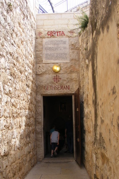 Гефсиманский грот почитается католиками как место, где собирались Иисус с апостолами, где Он был предан Иудой.
