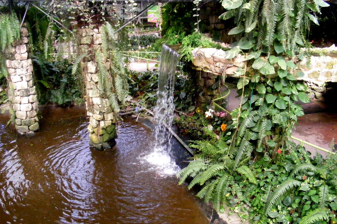 Внутри оранжереи еще есть птичник. Так вот люди заходят в клетку и ходят среди птиц.