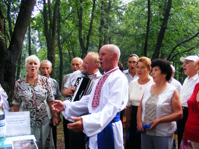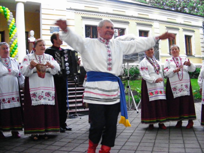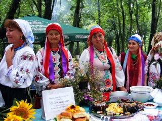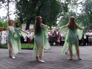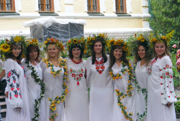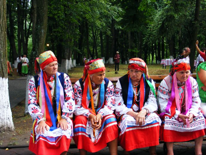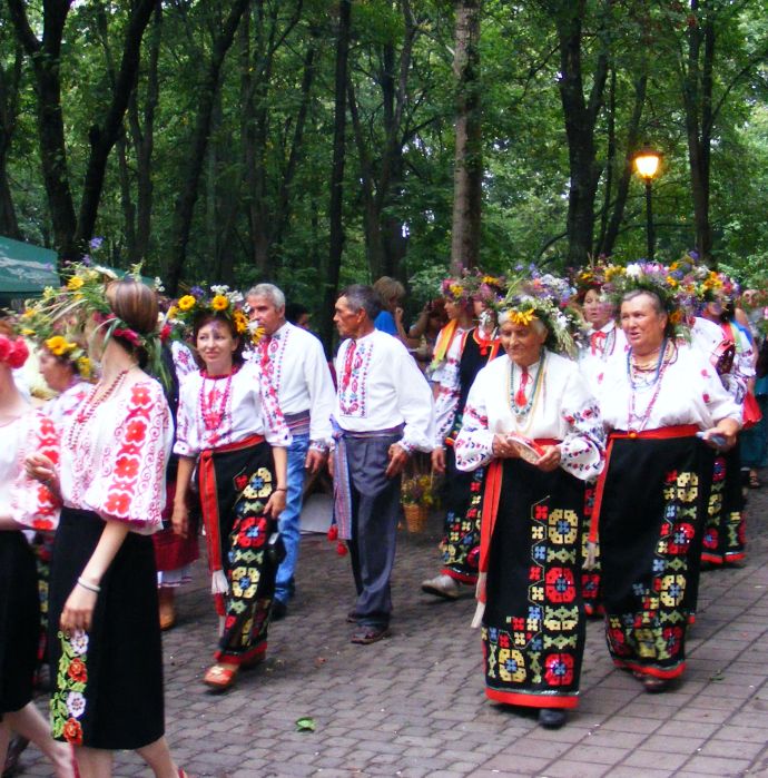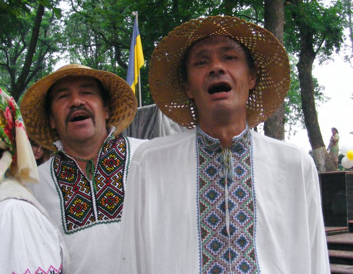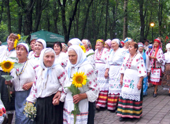 Очень понравился казак с трембитою и девушки в полупрозрачном. Высоким гостям они, наверное, тоже понравились :) А некоторые бабушки слишком богато наряжены, как на мое имхо. Я где-то вычитала: молодые девушки должны быть в ярких вышиванках, а те, что постарше, в более скромных.