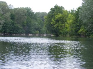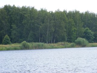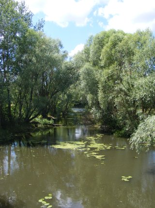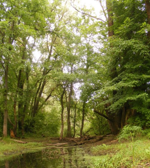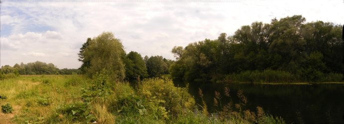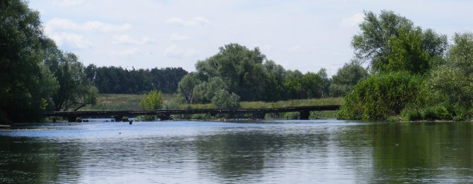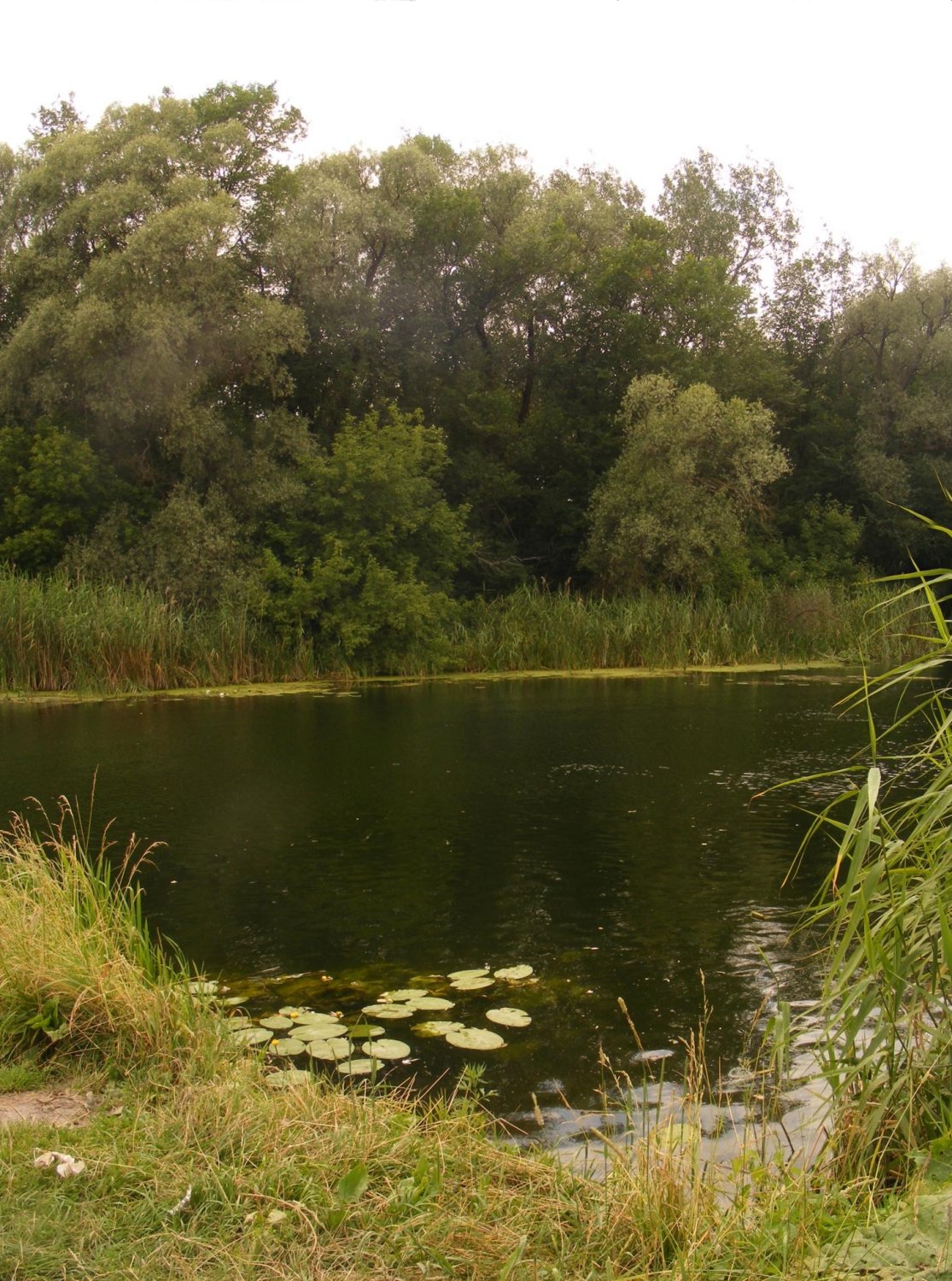 Есть такая пересыхающая речушка, отгороженная дамбой. Видимо когда-то эти земли подвергались мелиорации.