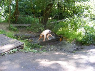 Утром — обязательное принятие ванн. Суворовский источник. Лечит от всех болезней. Особенно рекомендуется лечить глаза. Так там написано. Я, например, при любой возможности, стараюсь сюда прийти. И принять. Иногда не только ванну. Сначала ванну — потом на грудь.