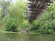 Что-то, весной, мне помешало сфотографировать этот подвесной мост. Как ни странно я по нему ни разу не ходил. Все не досуг. Знаю куда приведет, Знаю, но не значит, то что мне туда надо. Как-нибудь соберусь.