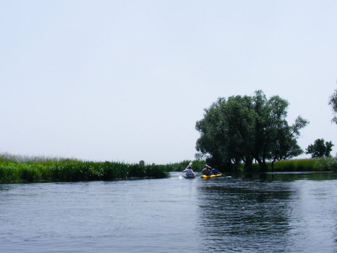 Что-то со стоянками плоховато. Все приличные места заняты рыбаками и машинами. Отношение людей к байдарочникам разное, в основном — диковинка. На всю реку слышно: "Вася, Петя! Байдарки плывут". Так и хочется им в ответ — плавает г…, а мы ходим. Но что взять с людей которые 500 метров от дачи до реки преодолевают на автомобилях?