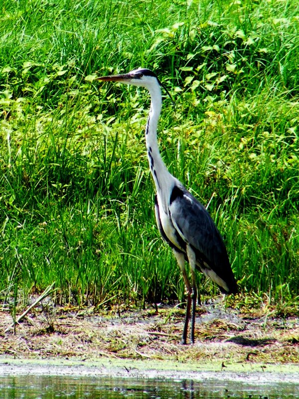 А этот серый цапль, менее пуглив, но такой же шустрый.