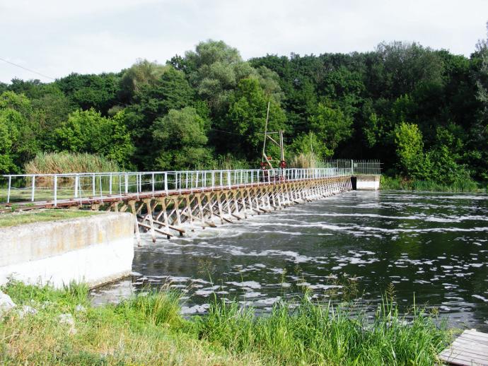 Гребля. Плотиной назвать нельзя, но что-то же держит. Уровень регулируется деревянными щитами, которые выставляется с помощью лебедки.