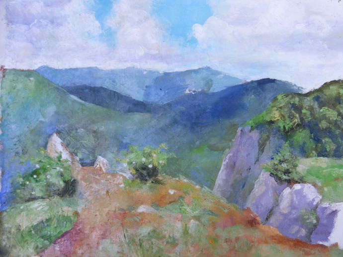 А вид-то с перевала — замечательный (чуть-чуть отойти от дороги). Кстати, вот это березовый цвет слева в углу — это цвет моря — рука даже не дернулась к фильтрам