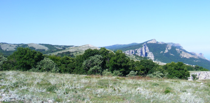 Хождение по ромашковой яйле доставляет удовольствие. Проходим воронцовский кордон, с него вид на военную базу, кто-то меня начинает уверять, что это уже не военные, что это уже склады. (тихо улыбаясь, ню-ню, чтобы военные отдали такую территорию гражданским, спорить — бессмысленно, ни у той ни у другой стороны доказательств нет. По крайней мере известно что это была (а может и есть) станция дальнего радиолокационного обнаружения