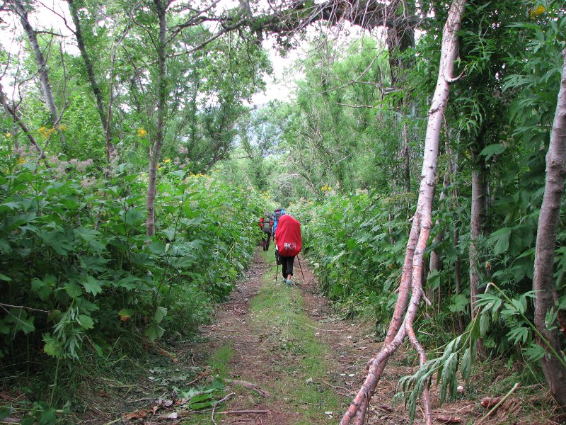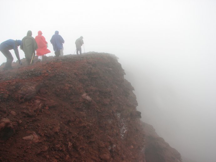 Подняться или пройти до следующей сопки по вулканическому гребню в тумане? Не слабо! но нас там нету. А они были!