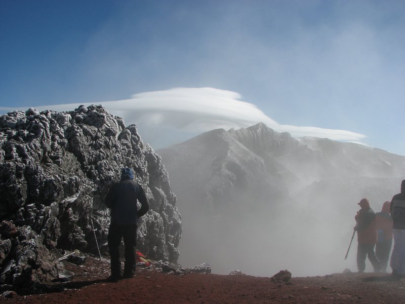 Вот такая там наверху погода — до вершины идешь в тумане, чуть приподнялся на верх — ветер