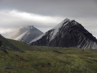 На левой фотографии — на заднем плане сопка "курит"