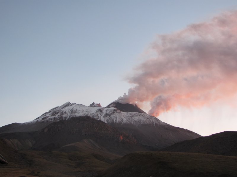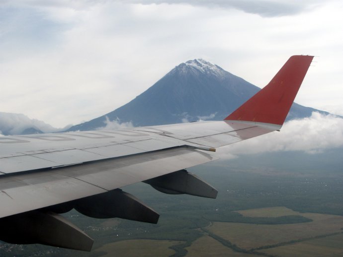 А вулкан который слева, я знаю!!! Толбачик. Вот который пониже — это у него крышу снесло (давно). Плоский и Острый Толбачики.