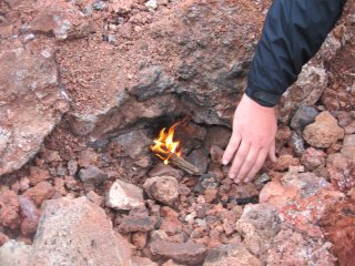 Как вы думаете, что это он делает? Костер палит? Если бы мне не рассказали, то и я бы так думал. Оказывается, это они положил деревяшечку к дырке из земли, а деревяшечка загорелась. Вы еще хотите пожарить яичницу?