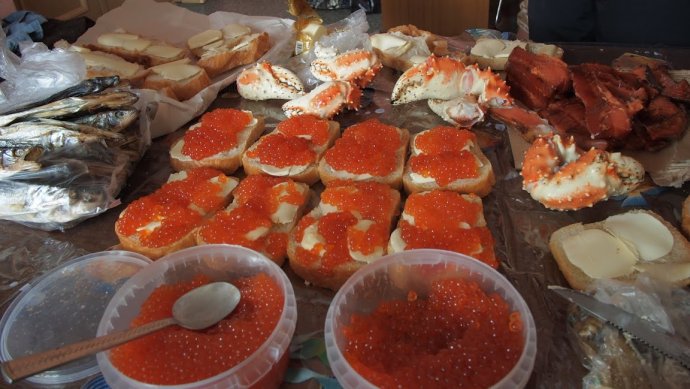 Первый день подготовительный — оформление всякого рода документов — организация заброски, регистрация в КСС, поедание красной икры, крабов и рыб, покупка фальшфейеров и много другого.