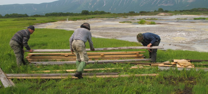 Водит нас по заповедным местам инспектор по имени Женя. А по национальности — ительмен (это у них так аборигены называются.) Водит и рассказывает, и показывает. "Вот это — росянка". Ух… никогда не видел до этого ранее, не думал, что растение имеет такие маленькие цветочки. "А вот здесь живут археи — древнейшие микроорганизмы, ни водоросли, ни бактерии. На Узоне они живут в источниках с температурой 96°С, используют «для дыхания» не кислород, а серу, и энергетические запасы пополняют за счет сероводорода.»