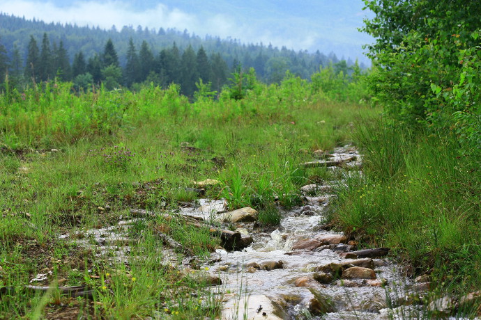 ручей Воревчик, тщательно осматривая местность на пути поиска.
