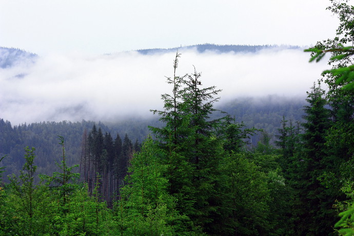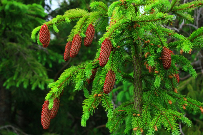 Где-то по пути с/на Грофу ветви смереки.
