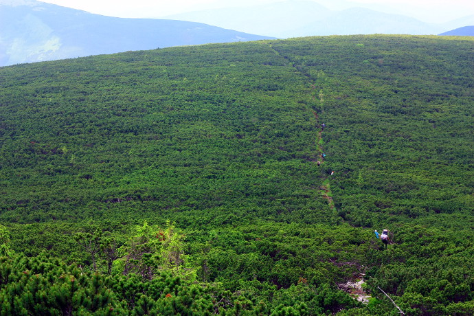 Но шаг влево, шаг вправо с этой тропинки невозможен. Повторяю по буквам: Н Е В О З М О Ж Е Н. Заросли кедрового стланика непроходимы. Если, конечно, хотите испытать незабываемые ощущения продирания по этим зарослям — милости прошу.