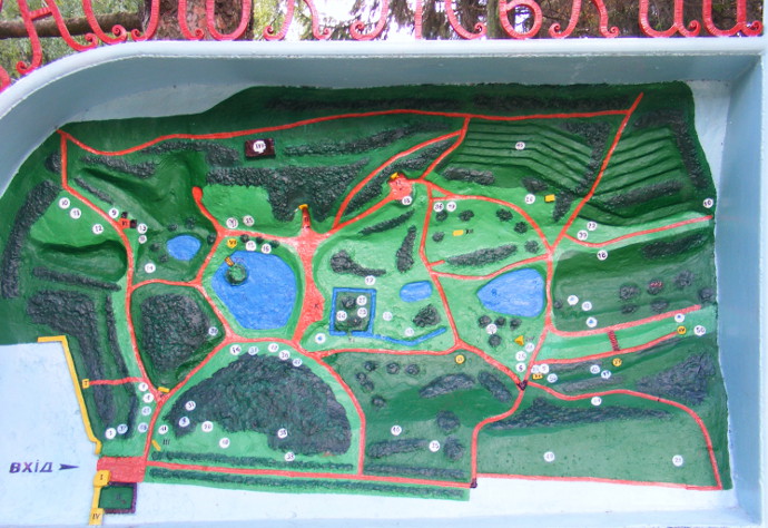 На самом деле есть карта — бооольшая. Не заблудишься. На карте показаны места произрастания акклиматизированных насаждений.