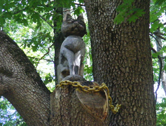 Если на дереве была сова, то почему бы на дерево и не загнать кота-ученого, и на цепь, золотую, посадить?