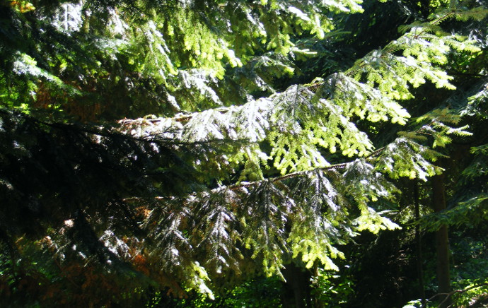 Там лапы у елей дрожат на ветру… Не… это там. А здесь лапы у елей светятся на солнце.