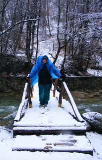 Очень опасным оказался этот мостик. Eго мостки — отшкуренное дерево, отшлифованное тысячами, как босых, так и обутых ног, под снегом представляет собой абсолютно скользкую поверхность.