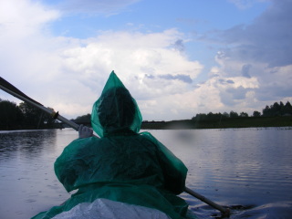Соответсвенно все средства защиты от дождя попрятали, вернее не доставали, пришлось срочно приставать к берегу,