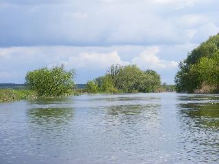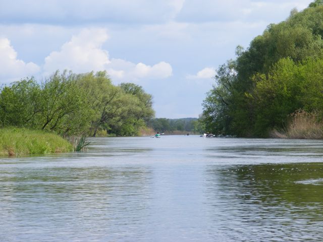 Я не устаю восхищаться сменой ландшафта и русла, то широко, то узко. то луг, то лес. Две байды, в том числе и я ушли вперед.