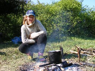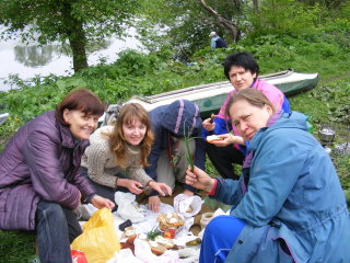 Все. Cобрали, а теперь — завтрак на траве, который нам приготовили наши спутницы. Спуск суден на воду, "шампанское аборт" — 50 грамм за начало. Выход.