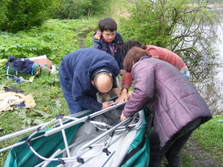 Мы остановились на левом берегу, ребята на правом. Одной байдой нас, по одному, переправляют на нужный берег и мы приступаем к ликвидаиии последствий.