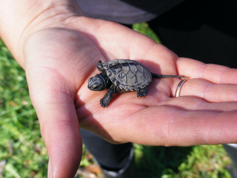 О черепахах. Черепахи вылазят на деревья, на берег. Вытягивают шею как можно длиннее. И совсем не пугливые. Чуть попозже они к себе на такое расстояние даже не подпустят. Будут прыгать в воду и увидеть их будет не так просто.