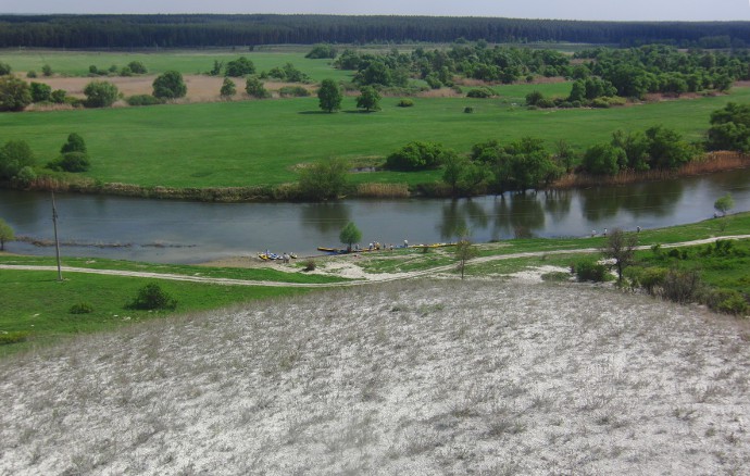 Характер реки. Справа меловые склоны, слева заливные луга. Лес подходит к берегам в самый нужный момент — к ночевке.