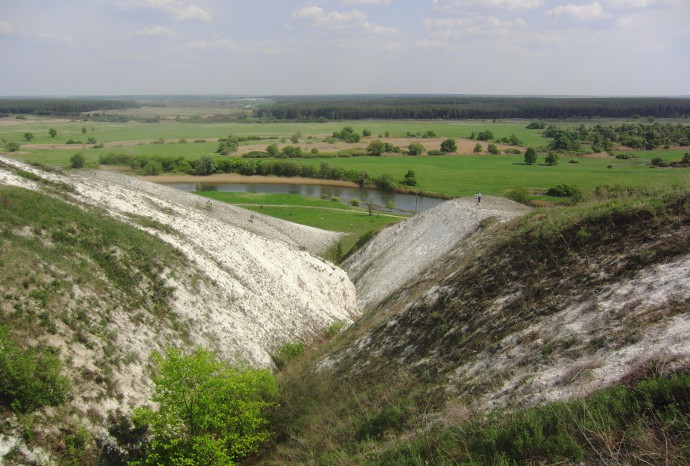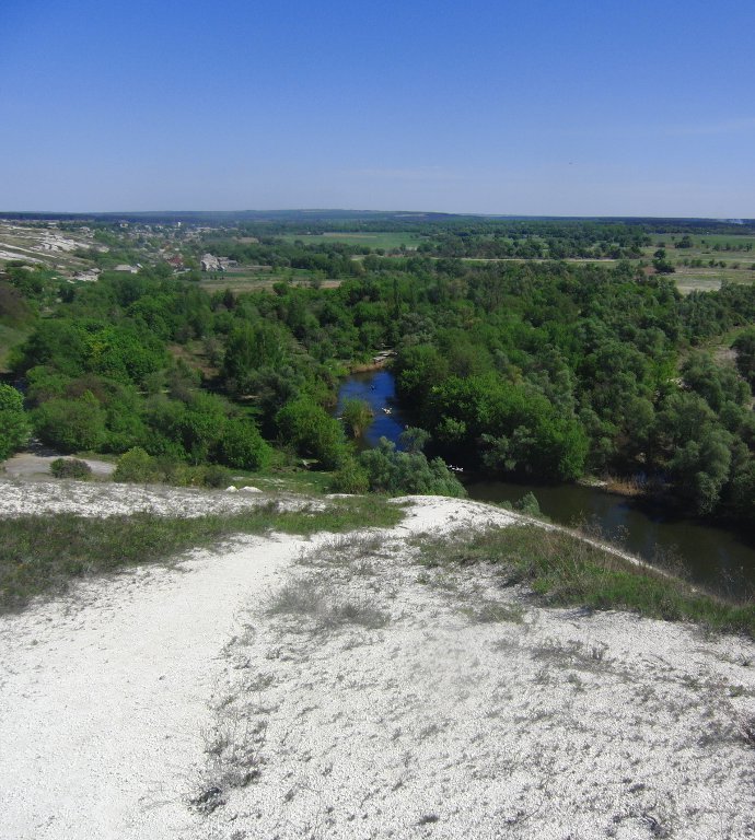 по другому. Величие меловых склонов, а напротив заливной луг. Уже, уже зеленеют дерева, и только-только сошедшая вода с луга.