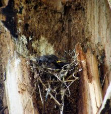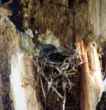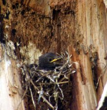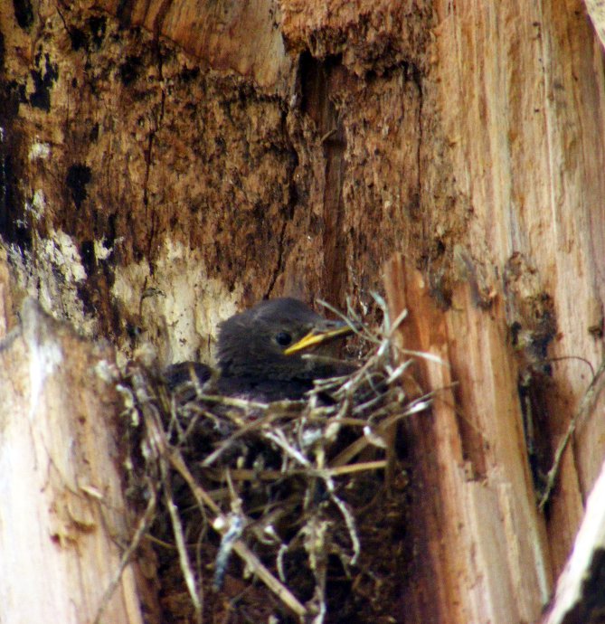 Где-то не привале под каким-то деревом, наблюдаем за процессом кормления скворцов.