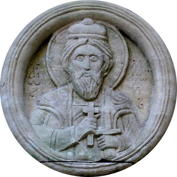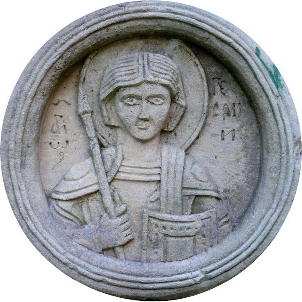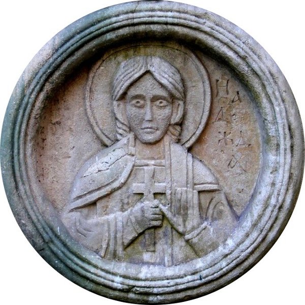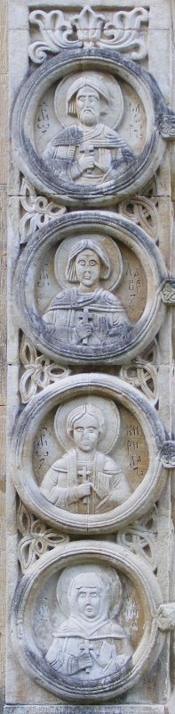 24 розетки с изображениями святых украшают пилястры у входа. Дабы не обидеть — имена, которые не разобрал, не привожу. Надо заметить, что розетки достаточно хорошо сохранились. Не знаю в каком состоянии они были до реставрации. И это… вот и сами розетки — расположены так как находятся в пилястрах снизу-вверх. Фрагмент розеток в сборе.