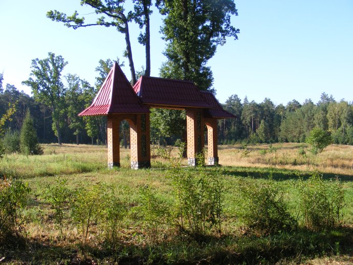 А по пути увидеть арку посреди поля и удивиться. Будущий дендропарк. Деревья посажены. Таблички.