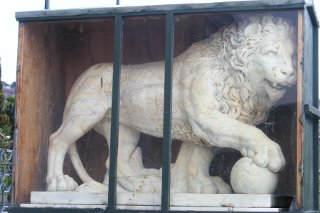 Это Серия из трех пар львов, спящего, просыпающегося, и проснувшегося. Так вот средние — просыпающие — львы в клетке и к показу не готовы.