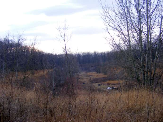 Сваливаю вниз с бугра на луг, минут 10 трачу на расчистку колодца от листьев. Через луг на любимое место отдыха.