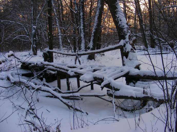 Иду по свежему снегу. Следу невиданных зверей. Не вижу я никакого зверства. А следы есть. Причем следы только по просекам и тропам. Хм, прикольно. Натыкаюсь на свежий человеческий след идущий, как мне кажется в нужном мне направлении. Чтоб не очень петлять и посчитав, что все равно куда-нибудь этот след меня выведет иду по следам. Сразу скажу, что следы идут в противоположную строну. Это немного радует. Все же откуда-то человек пришел?