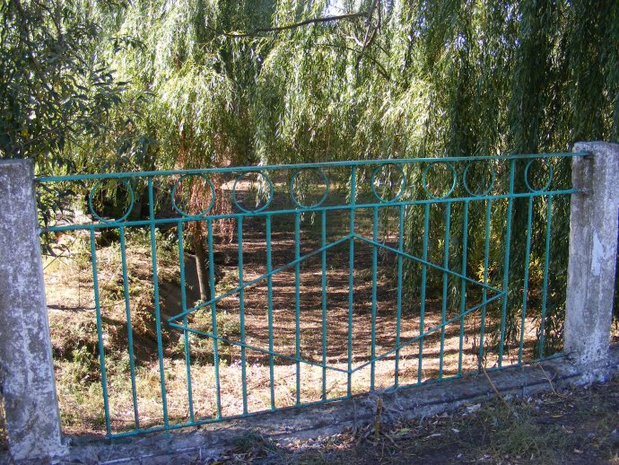 Опять оградка. Теперь в Печенегах. Крашенная. Не украдена на металл.